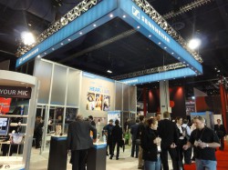 ゼンハイザーブースでは、日本でもおなじみのアディダスコラボモデルや、「HD598」などオープンエアー型のオーディオファイル向けヘッドホンの新製品群などを展示。加えて、iPhone/iPod対応のモバイル向けヘッドホン、はたまたゲームユーザー向けのヘッドセットまで、さまざまなタイプのヘッドホンがズラリと並ぶ。