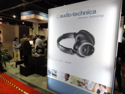 特に、ノイズキャンセリングヘッドホン/イヤホンはブースのなかでも大きく展開されており、同社の力の入れようがうかがえる。そのなかには北米向けの新製品「ATH-ANC23」の姿もあった。