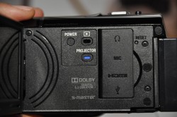 プロジェクター機能は3mの投写距離で最大60インチの画面を実現する。明るさは10ルーメン、解像度は640×360、コントラストは1,500対1となっている。本体にはフルデジタルアンプ「S-Master」や、音響特性をデジタル処理で最適化するクリアフェーズ、高音質ステレオスピーカーを搭載しており、撮った映像をカメラ一台で大画面投写して、収録時のサウンドも高品位に再現して楽しむことができる。