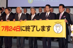 イベントには、平岡秀夫総務副大臣や(社)日本民間放送連盟の広瀬道貞会長ら関係各団体の首脳陣も参加。平岡氏が「デジタル化は、電波の有効利用による便利で安全な社会の実現など国民目線から見てメリットを有するもの。この観点から世界各国でもデジタル化が進んでいるし、また、デジタル放送の日本方式も様々な国で採用されている大変優れたものだ。日本も世界のデジタル化に遅れを取らないようにしていかねばならない」と述べるなど、それぞれの立場から地デジ化について語った。