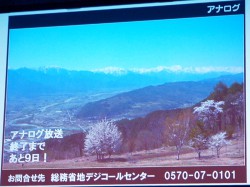 続いて地上デジタルテレビ放送事業者は、「アナログ放送における常時告知スーパーの訴求力強化」「アナログ放送画面を通じた徹底周知の実施」「アナログ放送終了直前期(7月)において、全放送局でアナログ放送画面を通じた特別周知を検討」という3点を実施。