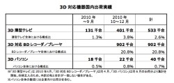 ■3D薄型テレビは2010年4Qで40.1万台を出荷