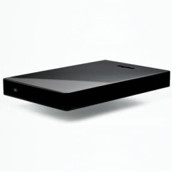 本機は外形寸法75.5W×115H×13Dmm、質量約140gのコンパクトなサイズを実現したUSB-HDD。稼働音は蝶の羽ばたき程度とされる18dbで、静かなリビングでも音が気にならないよう工夫されている。USBバスパワー駆動に対応。容量は500GBで、地デジ約60時間分の番組録画が可能。