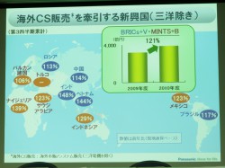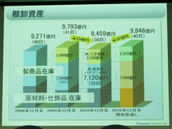 また、2011年4月に株式交換によって完全子会社化する予定の三洋電機の売上高は1兆2,230億円となった。太陽電池、車載機器、電子部品は堅調に推移したが、デジタルカメラ、二次電池などは需要が低下したことに伴い、売上は低調だったとしている。なお、営業利益は買収に伴い計上された無形固定資産の償却費等を含めて4億円となった。