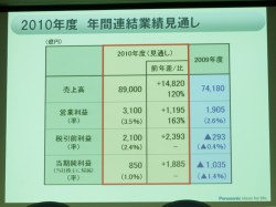 パナソニック、2010年度3Q連結業績決算を発表 − 純利益が黒字転換し1147億円を計上