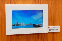 【SPEC】●画面サイズ:7.0型 ●解像度:800×480ピクセル ●アスペクト比:16対9 ●対応ファイル:JPEG、モーションJPEG、WAV、MP3 ●外形寸法:約214W×144H×26.5Dmm ●質量:約430g
