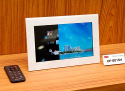 【SPEC】●画面サイズ:8.0型 ●解像度:800×480ピクセル ●アスペクト比:16対9 ●対応ファイル:JPEG、モーションJPEG、WAV、MP3 ●外形寸法:約221W×146H×26.5Dmm ●質量:約430g