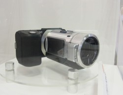 FALCONBRIDのLSI自体は、すでに4K2Kの映像をリアルタイム記録できるだけのパフォーマンスを備えており、新製品のGS-TD1やGZ-HM990では、その処理能力を主に3Dの動画撮影や再生に使用している。今回の展示では、その高い処理能力を4K2K関連機能に用いた例として、4K2Kの動画撮影に対応したビデオカメラと、4K2K解像度を持つJPEG画像を毎秒60枚高速連写できる静止画撮影用カメラという、2つのプロトタイプを展示している。