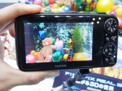3Dの動画・静止画撮影に対応する「FinePix REAL 3D W3」のトライアルも、会場の大きなスペースを使って紹介されていた。こちらではカメラで撮影した3D写真を、本体に搭載する「プレミアムクリア3D液晶」により、メガネなしで3D再生を楽しめる点についても魅力をアピールしていた。