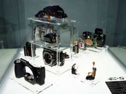 また、前述の「XZ-1」を始めとして様々な製品の分解モデルが見られるのもひとつの特徴。デジタル一眼レフカメラ最上位機「E-5」の分解モデルや、「ZUIKO DIGITAL ED 14-35mmF2.0 SWD」レンズのカットモデルなども展示されている。
