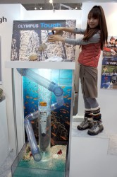 そしてこちらも発表したばかりの新製品「SZ-10」なども用意。同製品などが搭載する3D静止画機能で撮影した写真のデモ上映や、「OLYMPUS Tough TG-610」の防水・耐衝撃性能のデモを行っている。