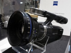 また、昨日発表のあったEマウントレンズの仕様公開(関連ニュース)を受け、さっそくサードパーティからのEマウントレンズなども参考展示。NEX-VG10に装着したカールツァイスレンズは「Carl Zeiss Compact Prime CP.2 85mm/T2.1」という名称で、「近々発売」と紹介されている。