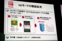 今回の新製品に合わせ、「spモード」の機能拡充も発表された。Androidマーケットでアプリを購入した際、支払い先として「ドコモ」を選択すると、月々のケータイ料金と一緒に購入代金を支払えるようになった。ただし日本円決済のもののみが対象となる。本サービスは3月下旬リリース予定。