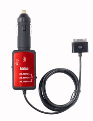 パッケージサイズは110W×215H×30Dmmで、本体質量は約78g。コード長は1.2m。12V/24V車に対応する。