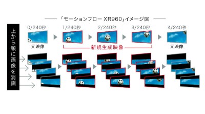 バックライトブリンキングを活用することでホールド時間を短縮し、さらに動画解像度を向上。同社では「16倍速相当」と説明しており、「MotionFlow XR 960」として訴求する。なお、HX900でもバックライトブリンキングは行っていたが、「同じ方法で比べると約8倍速相当だった」(同社)という。