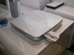 オーディオコンポーネント“Fidelio”シリーズからは、アップルのAirPlayに対応するワイヤレスオーディオシステム「DS9800W」を展示。左右のステレオスピーカーにWi-Fi機能とデジタルアンプが搭載されており、iPod/iPhone/iPadに保存した音楽ファイルをAirPlay経由で高音質に楽しめる。ヨーロッパでは今春から、バッテリーチャージ専用のドックをセットにして、899ユーロの価格で販売が開始される予定だ。