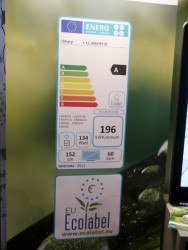 シャープは液晶テレビ“AQUOS QUATTRON”のヨーロッパモデル60V型「LC-60LE925E」を用意。アクティブシャッター方式の専用メガネで3Dコンテンツの再生が体験できた。またEU諸国で今年の11月から、テレビにも表示義務が加わる「EU Energy Label」の基準で、本機が最も高いAランクの評価を取得していることも、パネルを使ってアピールされている。