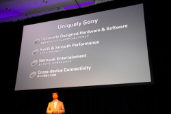記者会見には冒頭、ソニー代表執行役 副社長 コンスーマープロダクツ&サービスグループ プレジデントの平井一夫氏が登壇。「一つだけ申し上げたいことがある」と述べ、「お客様の好奇心をくすぐる製品を出していくという、ソニーがこれまで進めてきた考え方は新製品でも変わらない」とし、「すべてのコンシューマー製品がつながることの付加価値」を訴求したい、と述べた。