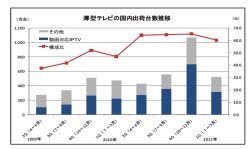 一方、IPTV対応テレビの国内出荷実績は313万9千台(前年比141.4%)となり、薄型テレビ全体における構成比は60.2%だった。2010年度計では1,639万7万台で、構成比は63.8%となった。
