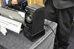 同社は、96kHz/24bit対応USB DAC&アンプ内蔵スピーカー「KS-1HQM」をリリースした後、本機を使ったネットオーディオスタイルの更なる音質向上を実現するため、USBケーブルと接点改質剤の開発に至ったという。会場には「KS-1HQM」によるサウンドを試聴できるコーナーも設けられ、人気を集めていた。