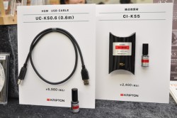 クリプトンは、同社の直販サイトで販売するUSBケーブル「UC-KSシリーズ」、接点改質剤「CI-KS5」を中心にピックアップし、ブースで紹介していた。