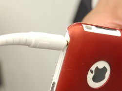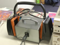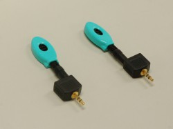 本機を使用することで、微小な音の成分を“顔の皮膚”を通して聴くことができるというもの。二股のコネクタとセットになっており、ポータブルプレーヤーに装着したコネクタに本機とヘッドホンを接続して使用する。会場では、本機の開発の元となったヘッドホン「TAKET-H2」も展示された。