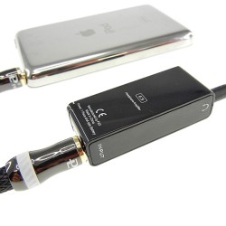 外径寸法が約55W×23H×14Dmm、質量約11gとコンパクトで、単4形電池1本で駆動するポータブルヘッドホンアンプ。DAPとの接続用の3.5mmステレオミニケーブルが付属する。