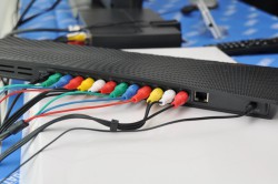 本体には1080iの映像信号をパススルーできるコンポーネント映像入出力端子(D3)、コンポジット映像入出力を備えるほか、アナログの音声入出力端子も1系統備えた。その他LAN、USB、リモコン制御用IRコントロール端子を備える。