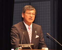 日本放送協会からは専務理事 技師長の永井研二氏が登壇し、SHVの研究開発の経緯を説明した。