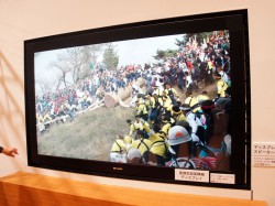 技研公開に先立って先日発表された、シャープとの共同開発によるスーパーハイビジョン対応85V型液晶ディスプレイ(関連ニュース)は、本イベントの大きな注目展示のひとつ。ブースでは「家庭で楽しむスーパーハイビジョン」と銘打ち、エンドユーザーがスーパーハイビジョンを使用するイメージを提示している。