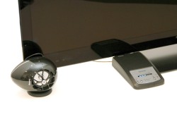 アンプ部は光デジタル入力、アナログ入力端子(3.5mmステレオミニジャック)を備えており、これでテレビと接続する。テレビのヘッドホン端子と接続した際は、テレビのリモコンで音量調節が可能。光デジタル端子と接続した際は本機専用リモコンでのみ音量操作ができる仕様だ。