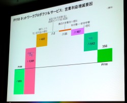 一方でPCは1,000万台の売上げを見込み、11年度も2桁以上の成長を遂げると予想。PS3についても、売上げ台数1,500万台と10年度以上を見込んでいる。ただしゲーム事業は大幅な減益を予想。PSN/Qriocityの不正アクセスに対して140億円の費用がかかるほか、12年目に入るPS2、7年目になるPSPの各プラットフォームの収益が減ることも想定した結果という。