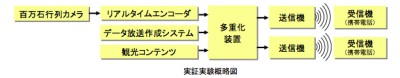 今回の実験では、百万石行列中継や金沢観光案内といった金沢百万石まつりの中継映像をリアルタイムでエンコードし、北陸電話社が制作したデータ放送コンテンツを多重化して放送。実験のねらいは、都市部の様々な状況における電波伝搬特性の検証や、課題分析、技術検証、ノウハウの蓄積などとしている。