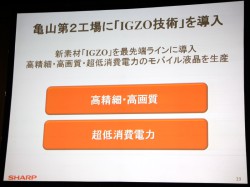 IGZO液晶については、亀山第2工場の生産を、今年10月以降からIGZOへ徐々に転換していく計画を発表。「すでにサンプル出荷を配っているが、2012年に向けて相当に大きなデザイン、引き合いを頂いている」と、タブレット機器向けに、IGZO液晶の大口の交渉が進んでいることを示唆した。