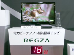 まずひとつめは、別項でもご紹介している「電力ピークシフト機能」を搭載したレグザ「19P2」(関連ニュース)だ。内蔵バッテリー駆動対応や「節電モード」の搭載、ワンセグバックアップ視聴機能も備えており、電力使用ピーク時に余計な電力を使わないよう設計されている。本製品は月産1万台程度を予定している。