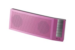 質量は約256g(本体のみ)。本体には3.5mmステレオミニジャックを装備しており、Bluetooth非対応機からの音楽再生を楽しむことも可能。3.5mmステレオミニケーブルが付属する。カラーはブラック/ブルー/ピンク/ホワイトをラインナップ。電源は付属のACアダプタのほか、単三電池×6でも動作する。