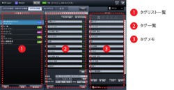 タグリスト作成機能では新たに「タグメモ」を搭載。テキストエディタのように、ENTERキーで改行しながら、タグ名の元のなる場面名などを行単位で入力することができる。そのほか、スマートフォンでは別画面となってしまう「タグリスト一覧」から「リタグ」画面までを見やすい一覧表示するようにもなっている。