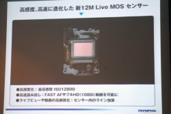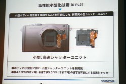 高山社長は、「オリンパスのデジタルカメラは常に世界最小・最軽量を実現してきた。また、超音波式ダストリダクションシステムやライブビュー機能なども他社に先駆けて搭載し、デジタル一眼の基本性能を向上。手ブレ防止機能の内蔵やアートフィルターなど撮影を楽しくする機能も多数開発してきた」と同社の技術力の高さをアピール。
