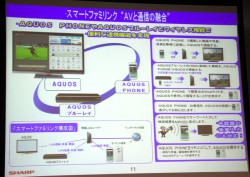 また山田氏は「AVと通信の融合」を付加価値の一つとして大きく訴求すると説明。「当社の46V型以上のテレビは、すべてLANに接続して欲しい」と述べ、「直近のL5ラインではスマートファミリンク機能を搭載し、ポータル機能『AQUOS City』を充実させた。見守り機能など色々な機能を搭載しているし、スマートフォンやAQUOSブルーレイとかんたんに連携できるようにもなった」と自信を見せた。