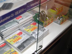 1Fには主にアウトレットPCやデジタルガジェットを多数用意。安価なアクティブスピーカーやヘッドホンなどはもちろん、PC用のメモリやOSなどのソフトウェア、iPodなどのDMPやオーディオレコーダーなど、ラインナップは多種多様だ。