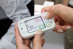 見守り歩数計「Mi-Look」は京セラ製の3G携帯電話のシンプルモデル。想定ユーザーは70〜80代のシニア層で、該当層の親を持つ子供が購入することを見込んでいる。