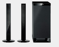 商品パッケージは2本のフロントスピーカーとアンプ内蔵アクティブサブウーファーにリモコンの専用セット。本体カラーはブラック。価格はオープンだが、37,000円前後での販売が予想される。