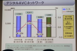 デジタルAVCネットワーク事業は、BDレコーダーが好調に推移したが、薄型テレビやカーエレクトロニクス、携帯電話などの売上が減収となった。営業利益は販売減や円高の影響を受けて160億円の損失を記録した。