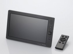 液晶は8インチのTFTで、バックライトはLEDを採用。解像度は1,280×768ピクセルで、最大再生画素数は3,000万画素。静止画のスライドショーで約3時間の連続使用が可能なほか、H.264形式のビデオの再生にも対応する。対応フォーマットは、JPEG/BMP/PNG、MPEG-1/MPEG-4 AVC/H.264(mp4)、MotionJPEG(avi)、MP3/AAC/WAV、TXT、MPEG-1 Video、MPEG-4 AVC/H.264、MotionJPEG、Divx & Xvid。映像の出力形式はYPbPrアウトプットで、出力解像度は720p、1080iに対応する。