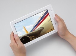 【SPEC】 ●液晶:8インチ ●解像度:1,280×768 ●最大再生画素数:3,000万画素 ●対応フォーマット:JPEG/BMP/PNG、MPEG-1/MPEG-4 AVC/H.264(mp4)、MotionJPEG(avi)、MP3/AAC/WAV、TXT、MPEG-1 Video、MPEG-4 AVC/H.264、MotionJPEG、Divx & Xvid ●外形寸法:213W×134H×14Dmm(スタンド部を除く) ●質量:380g