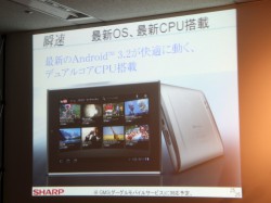 最後にシャープの新井氏は、本機について「新しいコンセプトのモバイル商品だと思っている」とコメント。同社は昨年12月に、GALAPAGOSの5.5型モバイルモデルと10.8型ホームモデルの2機種を発売。OSはLinuxベースのものを搭載しており、発売当初は量販店経由で販売申し込みを受け付け、購入者に直販する体制を取っていた。