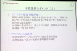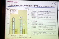 なお、カーエレクトロニクス全体の売上高に占めるOEMの売上構成比は、前年同期の約45%から約31%に低下した。これも震災の影響があるという。パイオニアとしては今後こちらは改善すると見込んでいる。