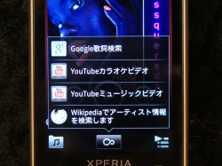 音楽再生用の独自のミュージックプレーヤーでは、関連情報をウェブで検索できる「infiniteボタン」機能を強化。Wikipedia上のアーティスト情報、Google上の楽曲の歌詞情報、Youtube上のカラオケビデオ、Youtube上のミュージックビデオという4項目を選択して情報を検索できるようになった。