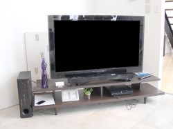 【SPEC】 <センターユニット>●実用最大出力:350W ●入出力端子:HDMI入力3、光デジタル音声入力1、アナログ音声入力1、HDMI出力1、ヘッドホン端子1、アンテナ端子(FMチューナー) ●消費電力:40W ●最大外形寸法:435W×135H×361Dmm ●質量:7.9kg <スピーカー>●型式:フルレンジ密閉型 ●ユニット:5.5cmコーン型フルレンジ×2、4×10cmコーン型フルレンジ×1 ●外形寸法:800W×50H×70Dmm(スタンド無し) 、800W×84H(100H:高さ可変式)×79.5Dmm(スタンド有り) ●質量:1.5kg