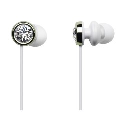 ハウジングにスワロフスキークリスタルを採用したカナル型イヤホン“Bijoux”。カラーバリエーションはラベンダーバイオレット/チタニウムシルバー/ライムグリーン/アクアブルー/シャンパンゴールド/ファントムブラックの6色。